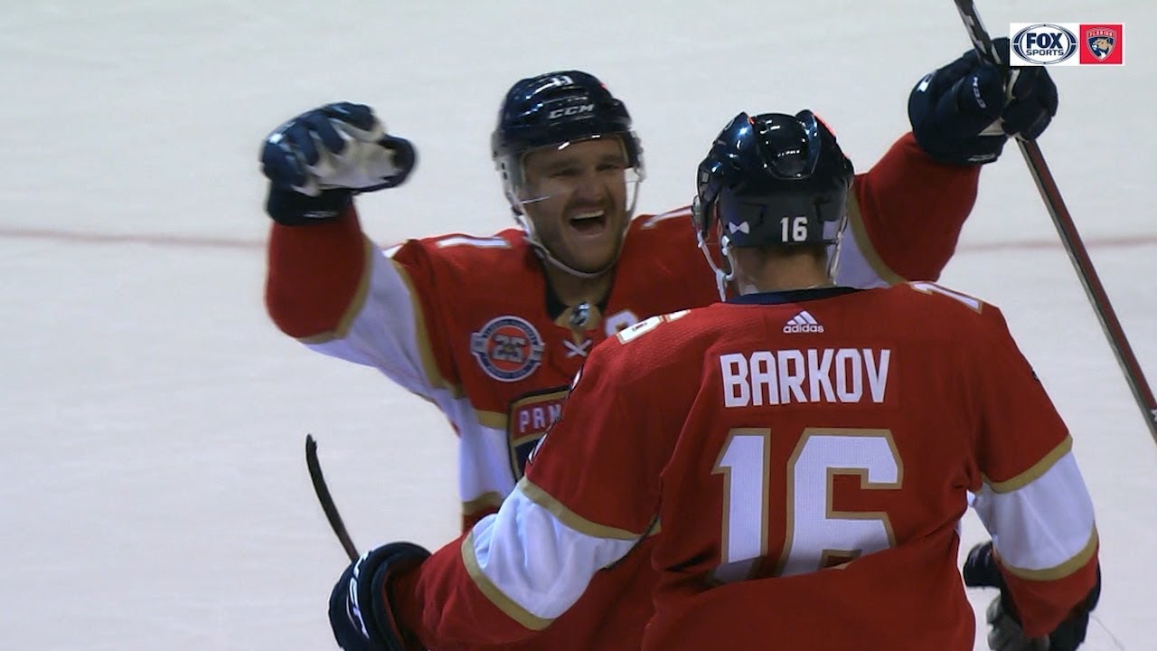 Aleksander Barkov sets up at the side of the net and buries a nice pass from Jonathan Huberdeau, lifting the Panthers to a 3-2 win in overtime