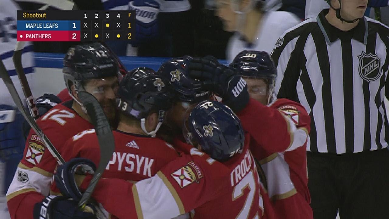 Nick Bjugstad dangles past Frederik Andersen for the shootout winner in the fourth round to give the Panthers a 2-1 victory