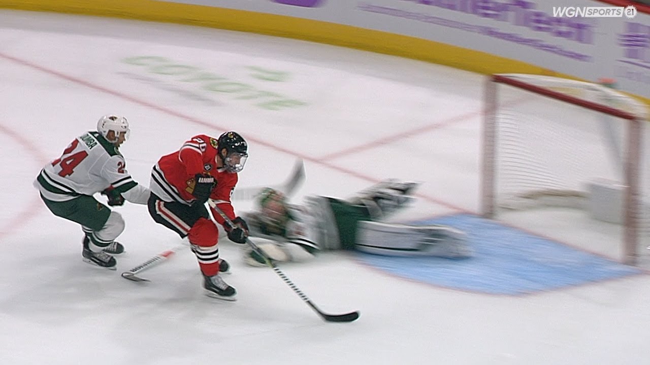 Brandon Saad blows by a defender with a burst of speed, picks the puck up and tucks a backhander by Alex Stalock, doubling the Blackhawks' lead in the 1st