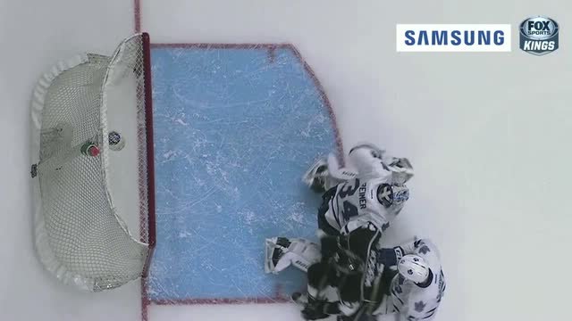 Toronto requested a Coach’s Challenge to review whether goaltender James Reimer was interfered with before the puck crossed the line. Good goal Los Angeles.