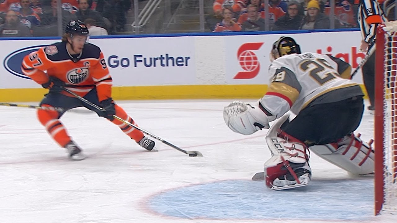 Connor McDavid kicks it in gear to speed by a defender and beats Marc-Andre Fleury with a crafty move for a 1-0 lead