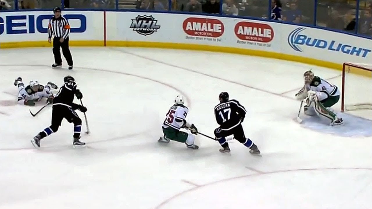 Tampa Bay Lightning forward Valtteri Filppula toe-drags around a defender and rips a quick shot past Minnesota Wild goalie Devan Dubnyk to open the scoring.