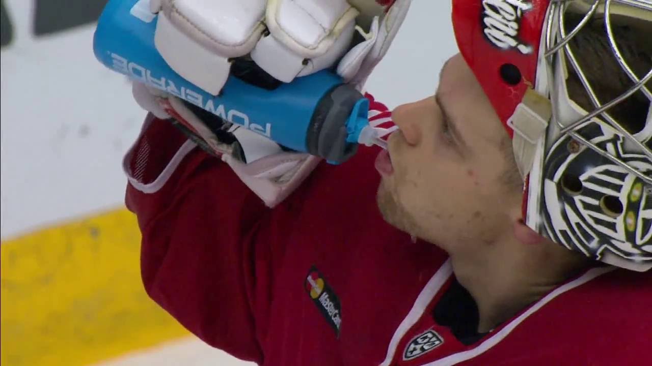 Сятери отражает бросок Эллисона шлемом / Harri Sateri saves with his helmet