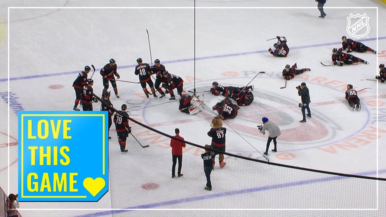 The Hurricanes celebrated their third-straight victory by tipping over like dominos, drawing cheers and laughs from the Carolina faithful