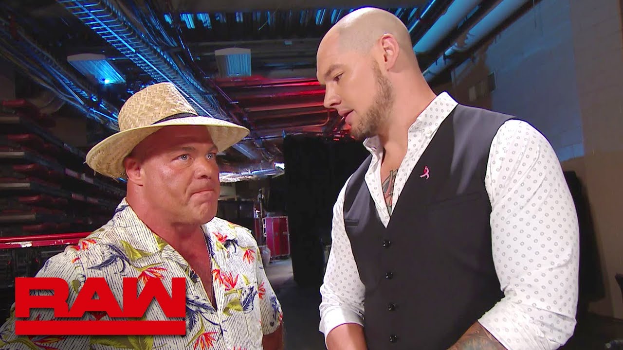 Kurt Angle's relaxing return from vacation turns stressful as he faces a Handicap Match against AOP, courtesy of Acting Raw General Manager, Baron Corbin.