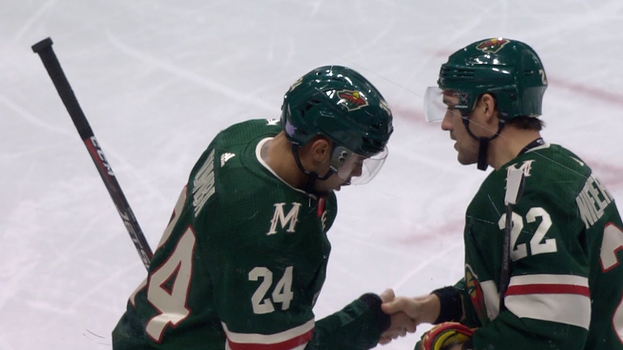Minnesota Wild defenseman Matt Dumba rips home a power-play setup from Nino Niederrreiter and calmly celebrates by giving him a good old-fashioned handshake!