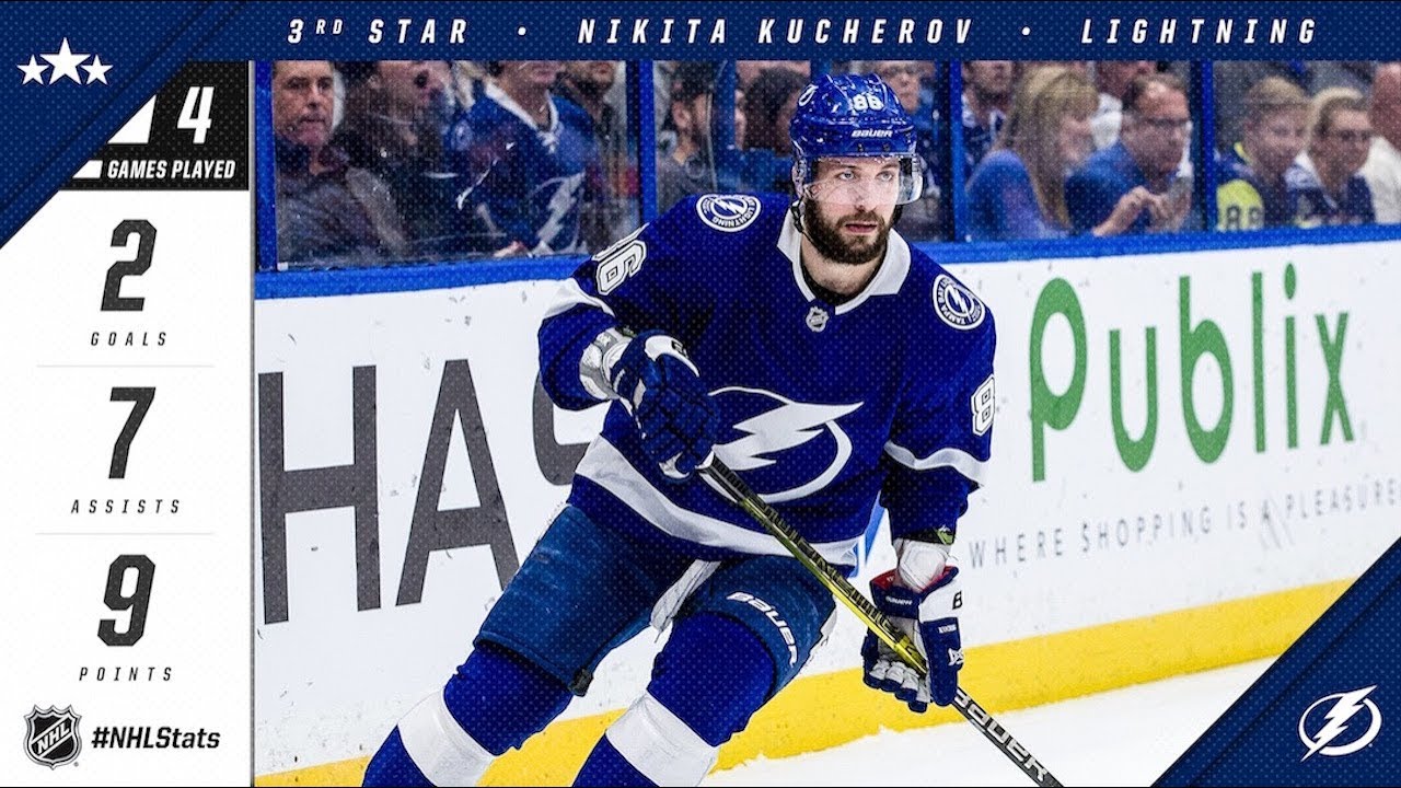 Lightning forward Nikita Kucherov collects nine points over four games, including seven assists to tie for the League lead, to take home third star of the week honors