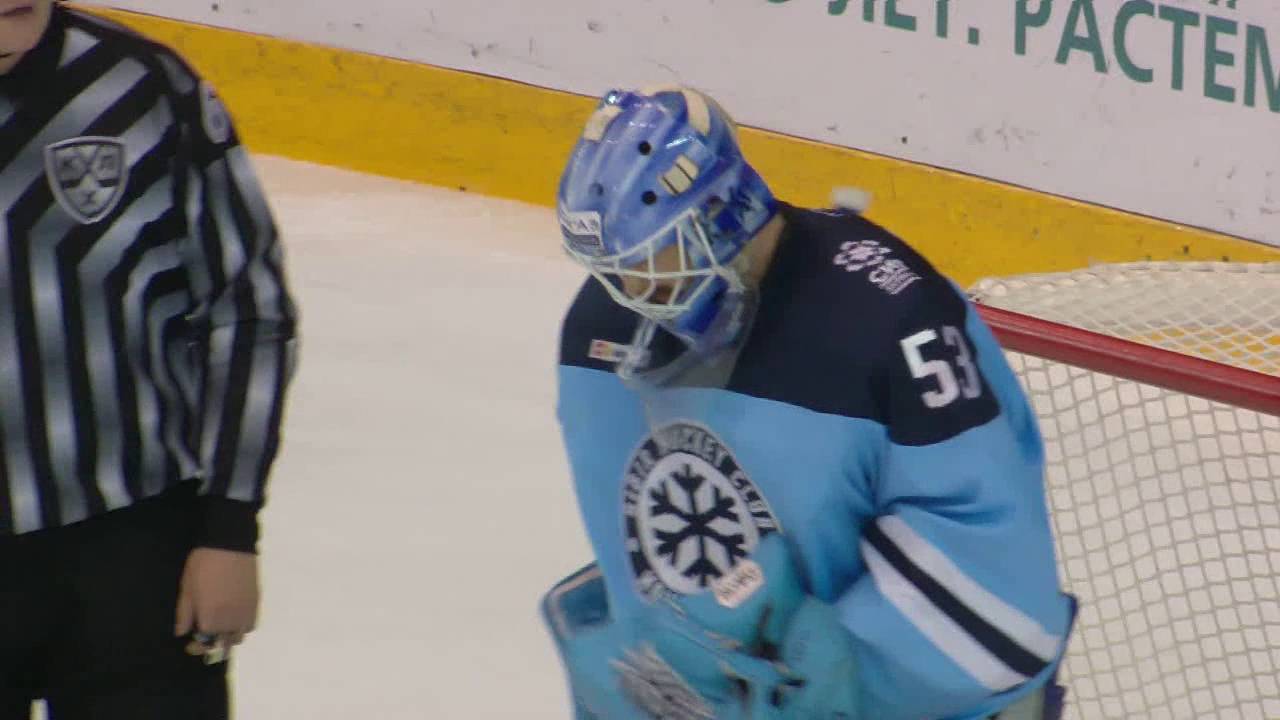 Sibir netminder Alexander Salak makes fantastic acrobatic save on the spontaneous adding