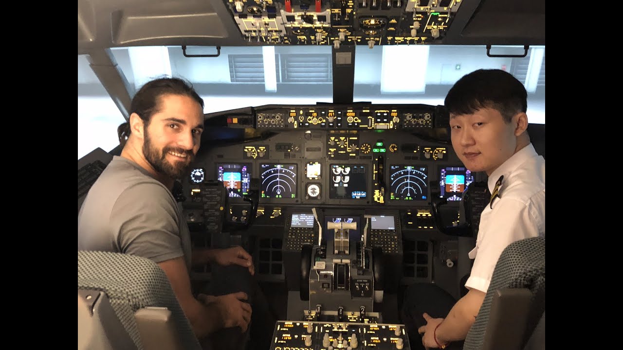 The Architect enjoys a guided tour of Shanghai's Mercedes-Benz Arena, site of WWE Live's Sept. 1 event, then takes control of the cockpit aboard TaxiWay Aviation Emu, the arena's amazing new flight simulator.