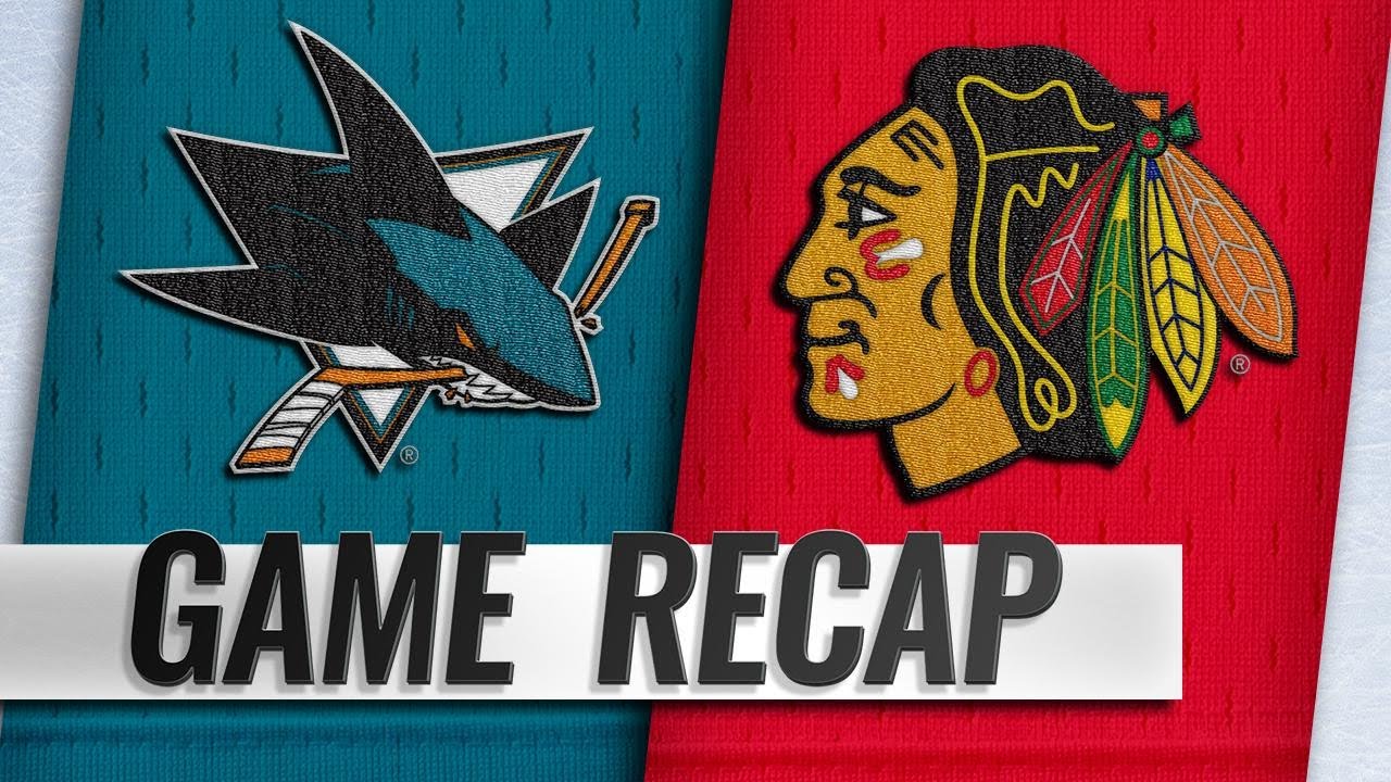 Seven different players scored and Brent Burns earned three assists to reach 600 career points in the Sharks' 7-3 win against the Blackhawks