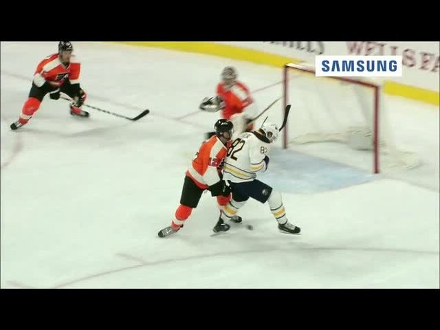 Review confirmed the referee's call on the ice that Marcus Foligno used a distinct kicking motion to propel the puck into the net. No goal Buffalo.
