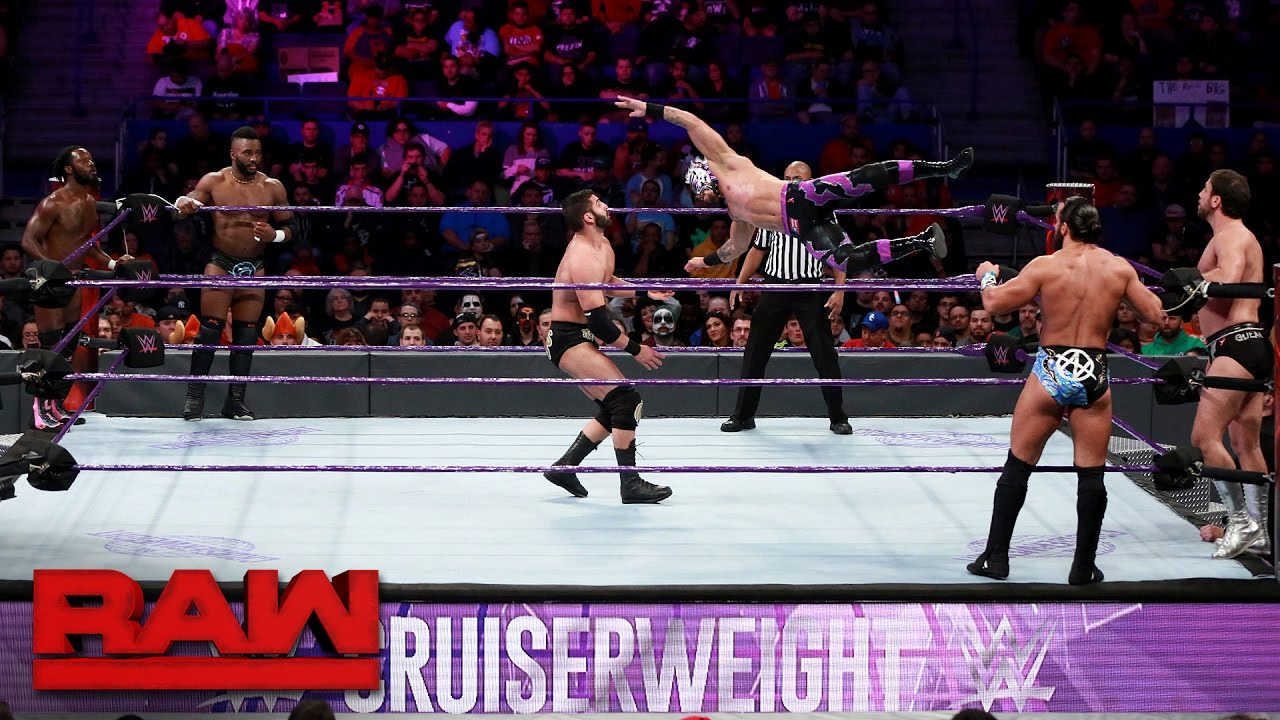 Raw's exclusive Cruiserweight division heats up in this Six-Man Tag Team Match.