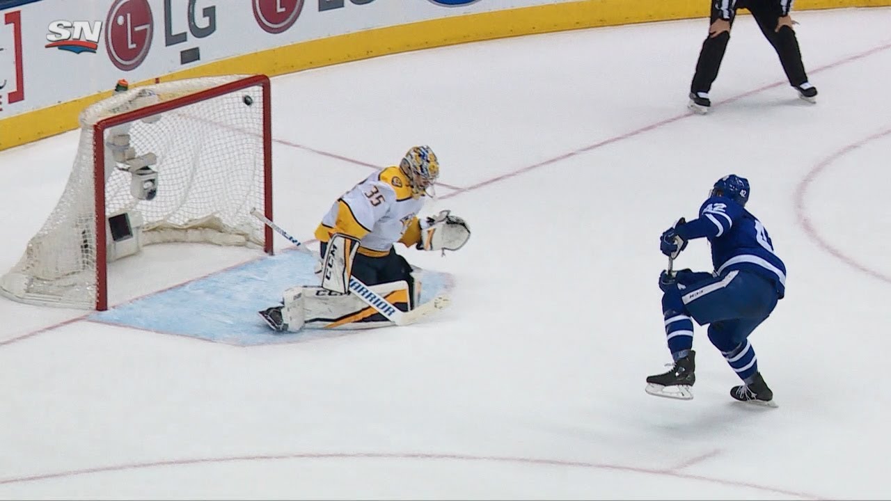 James van Riemsdyk scores the decisive shootout winner in the seventh round as Frederik Andersen saves five attempts from the Predators, leading the Maple Leafs to the win
